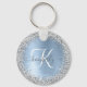 Easily personalise this trendy chic keychain design featuring pretty silver sparkling faux glitter on a blue brushed metallic background.