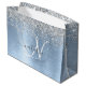 Blue Brushed Metal Silver Glitter Monogram Name Large Gift Bag