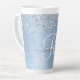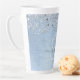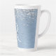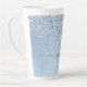 Easily personalise this trendy chic latte mug design featuring pretty silver sparkling glitter on a blue brushed metallic background.