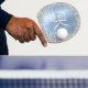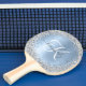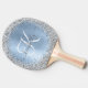 Easily personalise this trendy chic ping pong paddle design featuring pretty silver sparkling glitter on a blue brushed metallic background.