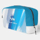 Stay organised in style with this custom toiletry bag featuring a modern blue brushstroke design in sky blue, royal blue, deep navy, and white accents. Perfect for travel or daily use, this versatile bag keeps your toiletries, makeup, or grooming essentials neatly stored. Personalise it with your name and initials to add a unique touch, or gift it to someone special for a practical yet stylish accessory.