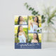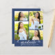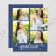 Be proud, rejoice and showcase this milestone of your favourite grad! Send out this girly, stunning, simple, modern, personalised 4 photo collage budget announcement invitation for an event to remember. A fun, playful visual of white script handwriting and cute, playful hearts, along with her name, class year, and school and 4 photos of your choice overlay a navy blue background. Personalise the custom text with your grad’s name, school and class year on the front. On the back, add your personal note, next school she’s attending, party information, etc. on the blue background. Guaranteed to add stylish fun to their special occasion!