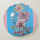 Blue Budgie Cute Whimsical Pink Blue Girls Baby Round Cushion