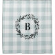 Rustic buffalo check plaid shower curtain personalised with your monogram initial in a rustic wreath frame. Please note that the subtle linen texture is part of the printed design and the product is not made of real linen fabric. Click the Customise It button to add your own text and create a unique one of a kind design. The perfect touch for your modern farmhouse bathroom decor!