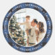Create unique Christmas return address labels featuring a blue and black buffalo plaid background. Easily personalise these blue chequered Christmas labels with your name, address, and a photo.