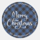 Create your own Merry Christmas return address labels featuring a calligraphy type font on blue buffalo plaid background. Easily personalise these blue chequered Merry Christmas labels with your family name and address.