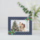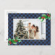 Blue Buffalo Plaid Watercolor Photo Christmas Holiday Postcard