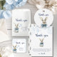 Add the perfect finishing touch to your baby shower favours with these charming favour tags featuring an adorable bunny with a blue bow and the words "Thank You" elegantly displayed. Ideal for a boy-themed baby shower or a whimsical bunny-inspired celebration, these tags bring a sweet and thoughtful accent to your gift presentation.