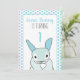 Cute blue boy's 1st birthday party invitation with blue bunny rabbit design let's your guests know that some bunny is turning one! All the first birthday party details can be easily customised on the back of baby boy 1st birthday invitation.