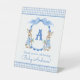 Blue Bunny Rabbit Gingham Monogram Crest Pedestal Sign