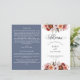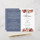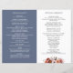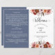 This elegant wedding program features gorgeous floral border on the top and on the back, with delicate flowers in a combination of blush pink, dusty rose, burgundy Marsala, grey and peach tones. Use of modern calligraphy details. Two sides in contrasting elegant dusty blue background colour. Personalise the program in both sides. NOTE: this program will arrive flat and requires folding down in the middle to assemble. The default value program is recommended.