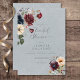 Elevate your wedding celebration with the timeless elegance of this invitation. The dreamy dusty blue background, tastefully distressed in white, sets the stage for an exquisite display of artistry. Adorned with stunning watercolor floral arrangements in rich navy blue, deep burgundy, soft mauve, and creamy ivory, complemented by lush sage green foliage, this invitation captures the essence of romance and sophistication. Celebrate your love story in style and let the floral magic unfold. Created by Simply Farmhouse Press.