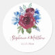 Blue Burgundy Watercolor Floral Wedding Classic Round Sticker