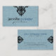 Blue Burlap Linen Texture With Black Floral Design Business Card
