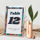Are you looking for a retro-modern and trendy groovy table number? Look at our Blue Burnt Orange Wavy Modern Retro Groovy Wedding Table Number! This wavy wedding table number features beautiful watercolor hand-painted wavy lines artwork with a colourful and boho abstract design giving a unique and trendy look.