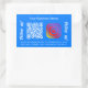 A light, bright blue background. Personalise and add your business name, your own qr code to your Instagram account and a text. White text. With the text x2: Follow us!