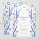 Engagement Party Invitation with a frame of elegant branches with blue buttercup and leaves. Hand drawn abstract blue delicate flowers leaves on white background. Romantic floral nature background. Abstract nature branches. Spring or summer floral design. Botanical plot. Soft blue botany Engagement Party Invitation. Blue Buttercup Collection.