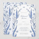 Rehearsal Dinner Invitation with a frame of elegant branches with blue buttercup and leaves. Hand drawn abstract blue delicate flowers leaves on white background. Romantic floral nature background. Abstract nature branches. Spring or summer floral design. Botanical plot. Soft blue botany Rehearsal Dinner Invitation. Blue Buttercup Collection.