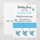 A white background accented by a border of pretty blue butterflies with a band of blue with shaded edges. Customise with all of your birthday information as desired.