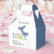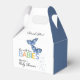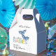A cute butterfly themed baby shower favour box featuring two blue butterflies is perfect for a twin boys baby shower. The design offers space to say "thank you" to your shower guests and personalise with the name of the mother-to-be.