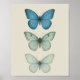 Blue Butterflies on Parchment - Vintage Nature Art Poster