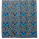 Beautiful, unique and customisable blue butterflies shower curtain on silver grey background.