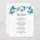 Blue romantic exotic beautiful butterflies. Elegant modern wedding Drinks menu.