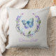 A beautiful addition to your home decor - this pillow is available in different sizes and fabrics! It features a blue butterfly inside a lavender wreath. Update the text to meet your own needs.