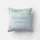 A single blue butterfly on a pale pasta blue and green watercolor background with a floral fringe with a single pink flower; with or without text of your choice.