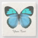 Pretty stone coaster with digital graphics of a blue, black, and turquoise blue butterfly. Black text reads whatever you want it to say. Makes a lovely gift idea.