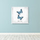 Add an elegant touch to your bedroom with a Blue Butterfly Floral Personalised Canvas Print. Print design features a pair of vibrant butterflies resting on a white floral vine against a light grey grunge background. Additional gift items available with this design as well.