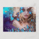 BLUE BUTTERFLY IN TEAL GREEN GOLD SPARKLES POSTCARD