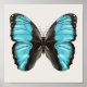 Blue butterfly poster with a digital drawing which showcases the beauty and elegance of one of nature's most stunning creatures - the Blue Morpho butterfly. The artwork captures the essence of the butterfly's iridescent blue wings. The background of the artwork is kept simple, with a muted white colour that contrasts the vibrant blue of the butterfly's wings. It is a perfect addition to any entomology and insect art lover's collection and a tribute to the awe-inspiring beauty of the natural world.