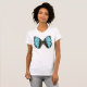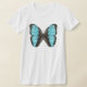 Blue butterfly shirt with a digital drawing which showcases the beauty and elegance of one of nature's most stunning creatures - the Blue Morpho butterfly. The artwork captures the essence of the butterfly's iridescent blue wings. The background of the artwork is kept simple, with a muted white colour that contrasts the vibrant blue of the butterfly's wings. It is a perfect addition to any entomology and insect art lover's collection and a tribute to the awe-inspiring beauty of the natural world.