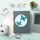 A beautiful sticker featuring a hand drawn blue mandala design with blue butterflies on it.