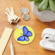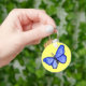 Painting featuring a blue butterfly with its wings spread in flight. Blue butterfly art rendered in watercolor. Make customised blue butterflies with your own text and images for great butterfly keychain gifts!