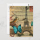 Blue butterfly Robin bird nest Paris Eiffel Tower Postcard
