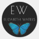 BLUE BUTTERFLY CLASSIC ROUND STICKER WITH CUSTOMIZABLE NAME FOR ENVELOPE SEALS