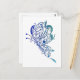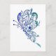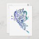 a decorative butterfly tattoo design in blue colours with lots of ornamental and geometric elements on a postcard
