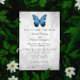 Elevate your butterfly theme wedding with this Blue Butterfly Wedding Invitation, designed to captivate. A vibrant butterfly dances against a textured grunge background, blending feminine design with elegant script and modern typography. This invite's simple layout showcases your wedding details with effortless charm. This customisable invitation is ideal for the bride and groom who wants to invite their guests with an elegant butterfly wedding stationery set.
