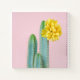 This trio of blue cactus sits on a pink background with a yellow flower.