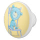 Blue Calico Bear Smiling on Chair Ceramic Knob