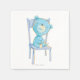 Just like the triumphant toddler who has finally climbed up onto the furniture for the first time, Calico Bear sits on his blue chair with a content smile on his face. This adorable illustration by David Walker from the book "Bears on Chairs" by Candlewick Press shows the cute, blue-and-white bear sitting happily on his single chair.  Children and adults alike will find this cheerful image endearing.