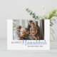 Blue Calligraphy Happiest Hanukkah family 1 photo Holiday Card