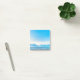 A calm beach scene with rocks, waves, clouds and blue sky make a perfect backdrop for your Post-it Notes