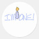 A single blue lit candle and text that reads "I'm One!" on this first birthday design.