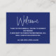 This fun and modern white on blue welcome card, placed in your welcome bag or basket in their accommodation, is a nice way to thank your out of town guests for the travel they needed to do to get to your wedding. Matching stationery and party supplies available.