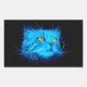A fractalized blue cat face with stunning yellow eyes against a black background.
