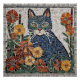 Blue Cat with Flowers Tiled Mosaic Poster