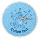 Handrawn blue cat cartoon playing the violin. Custom text.